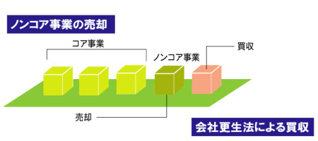 事業・サービス PM事業 AM事業 CRE戦略事業 M&A事業 商業/医療施設の開発 エコ・リゾート事業の開発 農業関連事業 コンサルティング業務 M&A事業M&A事業 【 企業買収・事業再生 】 ノンコア事業の流動化 企業が持つノンコア事業の流動化のため、事業の買収や譲渡により本来の企業の事業の再生を行います。 企業が持つノンコア事業を流動化して売却したり、不足している新たな事業を他社から買収することにより、さらに企業価値を高めることができます。 この方法は、健全な企業との関係で成り立つM&A以外にも、会社更生法や民事再生法による営業譲渡やスポンサーとして企業再生に関与する方法により成り立つ場合もあります。